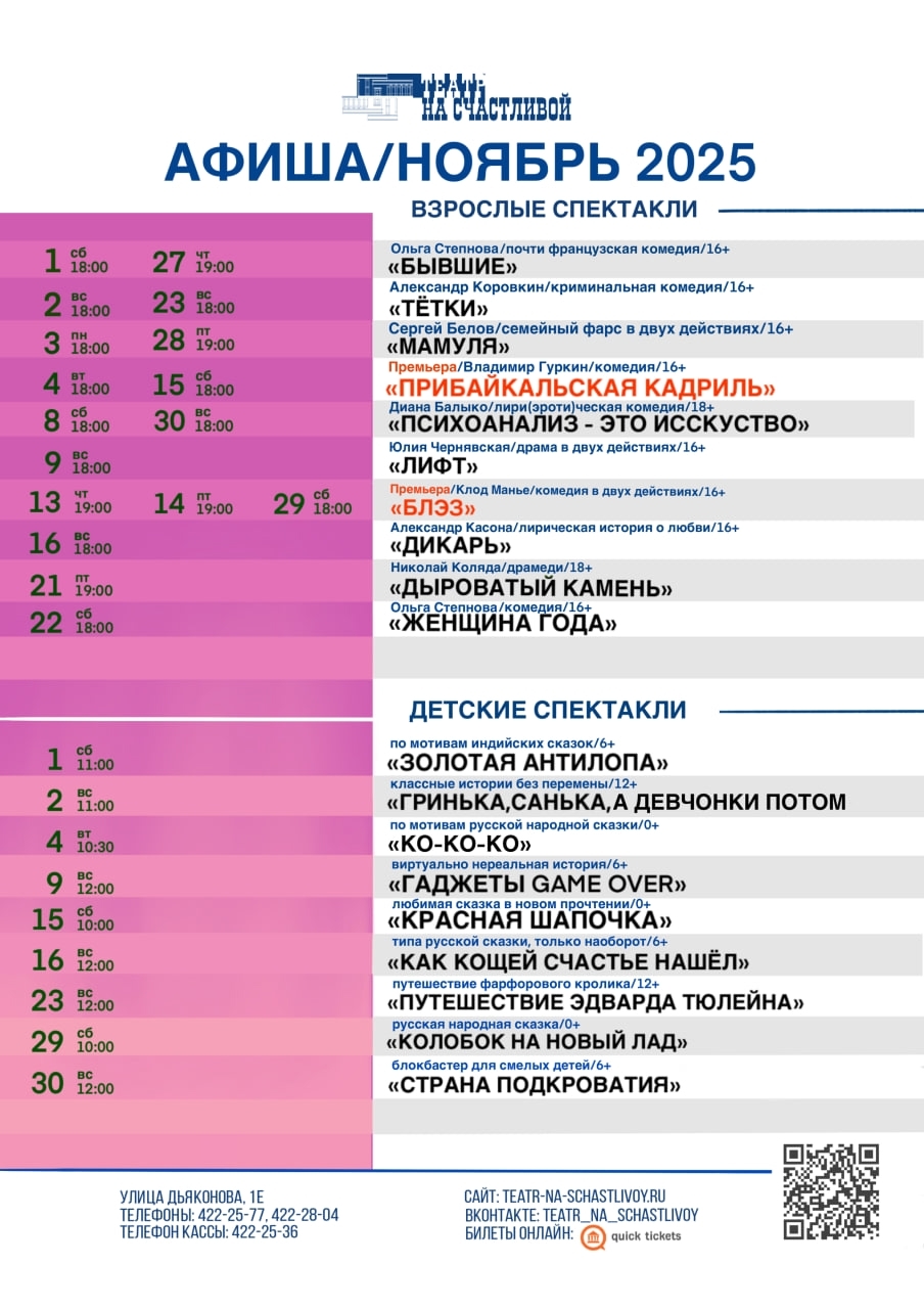 Афиша Театра на Счастливой