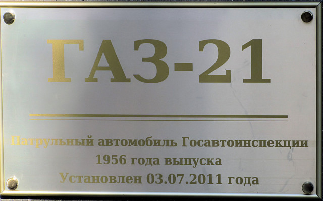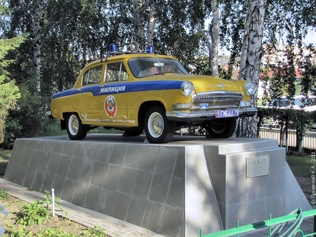 Памятник ГАЗ-21 "Волга" патрульному автомобилю ГАИ в Омске на ул.Красных Зорь возле здания Управления ГИБДД УВД был установлен 3 июля 2011 года