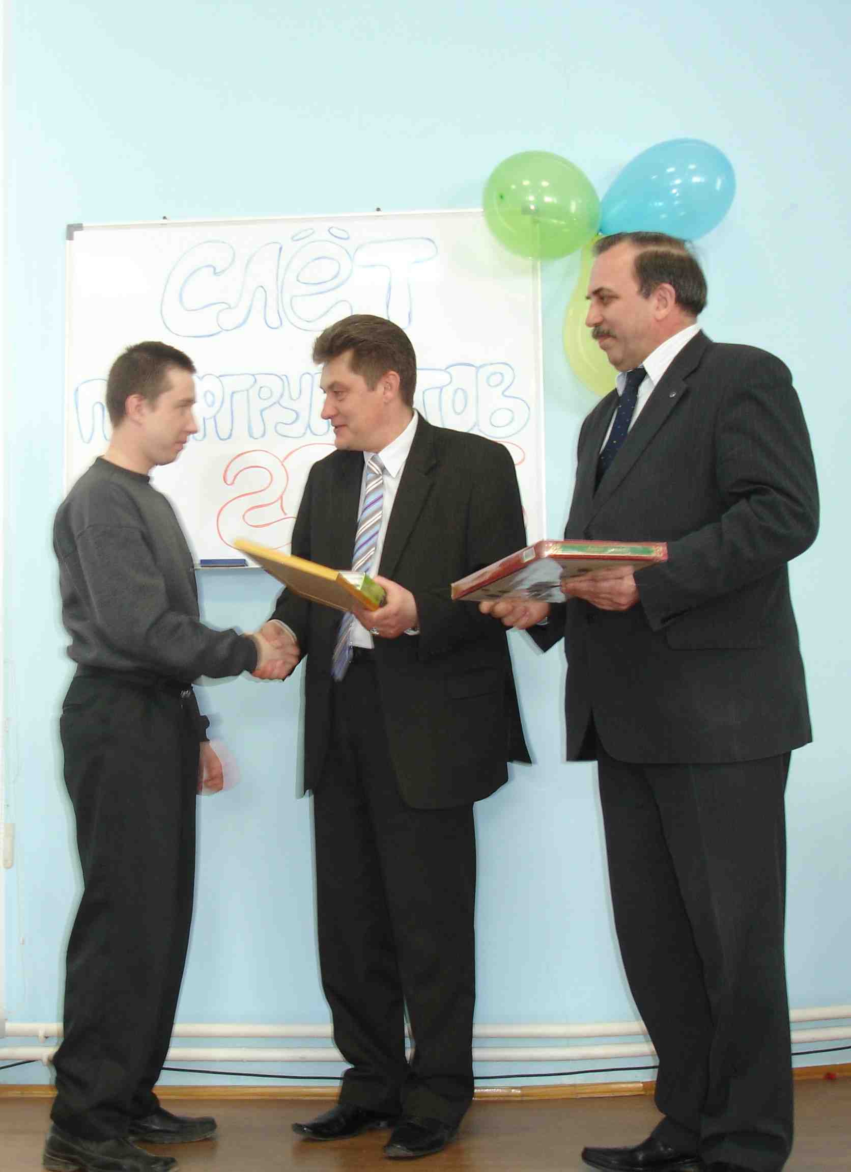 Председатель Обкома профсоюза Охлучин Борис Борисович рассказал участникам слета об итогах смотра профсоюзных групп в отрасли, а также наградил четыре профгруппы ОАО "ГАЗ", победившие в этом конкурсе.