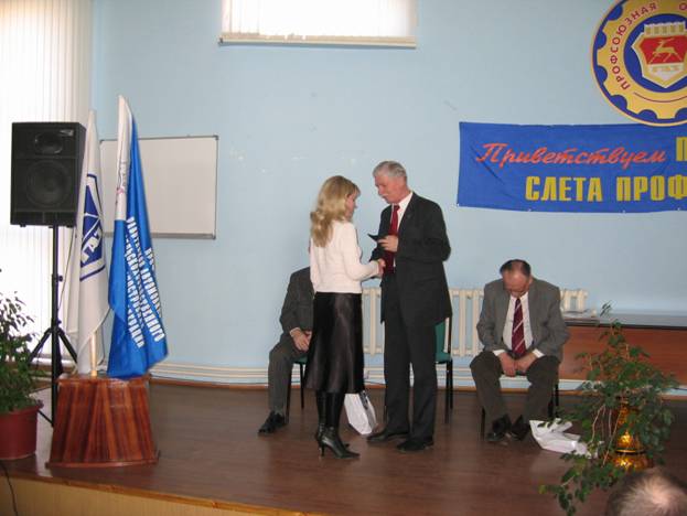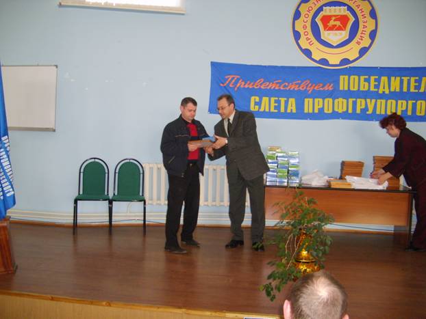 Заместитель председателя Обкома профсоюза Синев Михаил Михайлович вручил награды победителям смотра работы профсоюзных групп отрасли за 2006 год:
