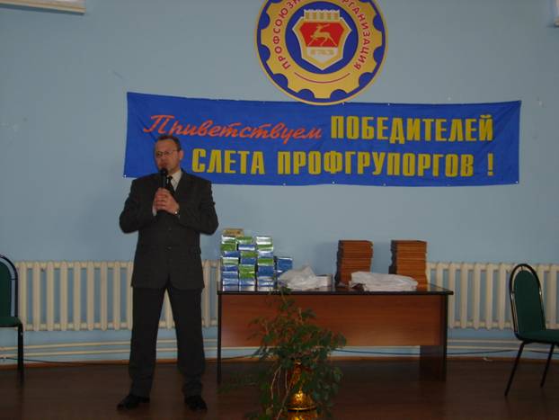 Приветствовал участников слета профгрупоргов и награждал победителей смотра-конкурса заместитель председателя профсоюзного комитета ОАО "ГАЗ" Юрий Петрович Носенко.