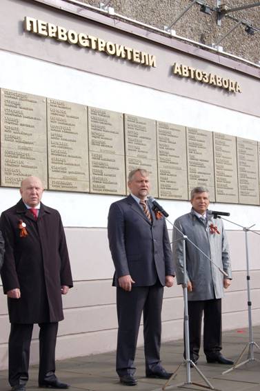 В церемонии открытия памятника участвовали первый заместитель Председателя Правления "Группы ГАЗ" А.Г.Баранцев, губернатор Нижегородской области В.П.Шанцев, мэр Нижнего Новгорода В.Е.Булавинов, глава администрации Автозаводского района В.И.Солдатенков, представители профсоюзной организации, ветераны и работники ГАЗа.