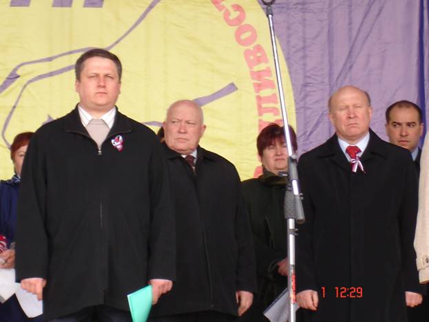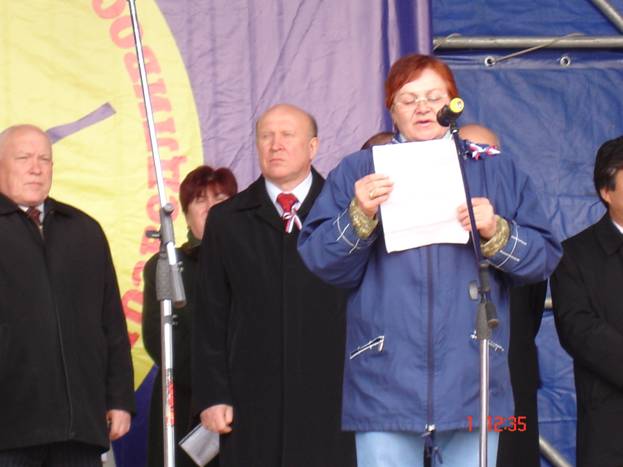На митинге выступили губернатор Нижегородской области Шанцев В.П., председатель Облсовпрофа С.Г.Некрасов и представители областных профсоюзных организаций.