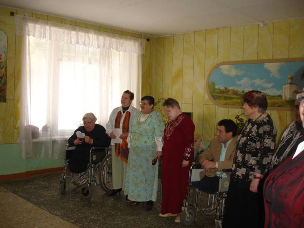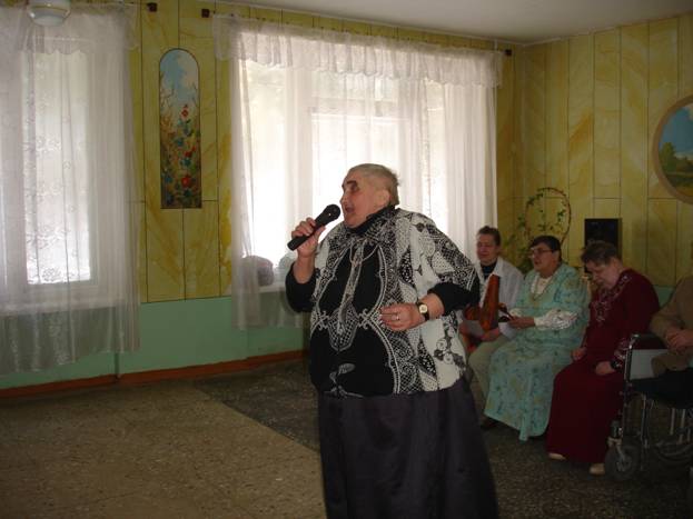 Хозяева в ответ от души поблагодарили гостей за теплые слова, за сладкие подарки и дали небольшой концерт, организованный своими силами. Это было волнующее и трогательное зрелище: люди, убеленные сединами, а некоторые с тяжелыми недугами читали стихи, пели песни и частушки.