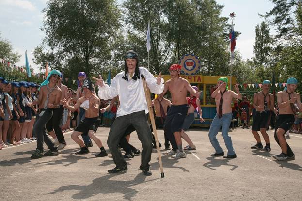Ребята и вожатые разыграли яркую «профсоюзную» сказку с настоящими пиратами, захватившими разрозненные корабли, караван со скандалящим гаремом, враждующих друг с другом дикарей, строительную бригаду, показав, что только в «Единстве – наша сила», а маленькая девочка Профуся посоветовала всем (и даже пиратам) объединиться и вступить в профсоюзы «Мореплавателей», «Строителей», «Охотников» и «Работников Востока».