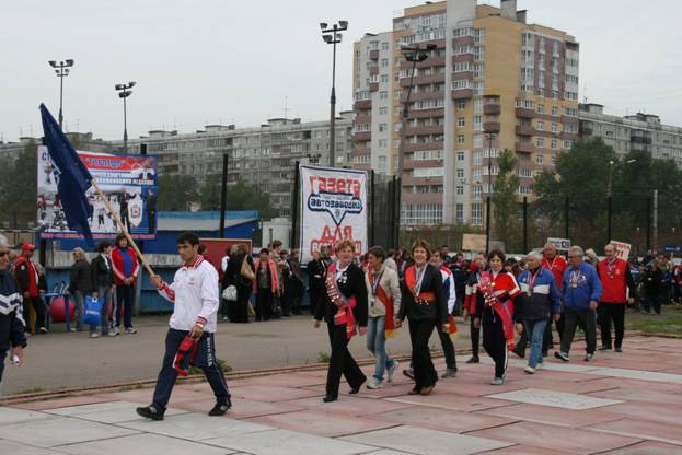 Начался спортивный праздник традиционным парадом участников. Флаг ГАЗа нес Р.Рахматуллин, шестикратный чемпион мира по самбо, за ним - прославленные ветераны спорта – автозаводцы.