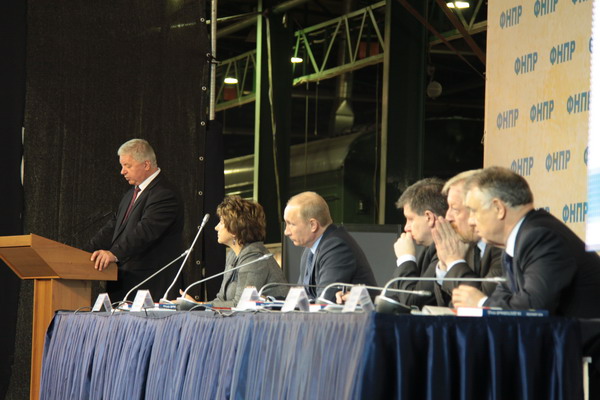 Затем выступил Председатель Правительства РФ В.В.Путин. Он высоко оценил ту роль, которые играли профсоюзы в минувшем пятилетии, особенно в период кризиса 2008-2009 годов. «Очень важно, что профсоюзы стали соавторами антикризисной программы правительства», - подчеркнул премьер. Затем он рассказал об основных параметрах той работы, которую вело правительство в сфере социально-трудовых отношений в период кризиса, а также о том, что планируется сделать в этой области в наступившем 2011 году. «Я вижу в профсоюзах надежного и самое главное - ответственного партнера. – сказал Председатель Правительства РФ В.В.Путин, завершая свое выступление. - Работа у нас разная, но цель одна обеспечить достойную жизнь наших граждан. И если мы будем работать вместе, мы достигнем этой цели».
