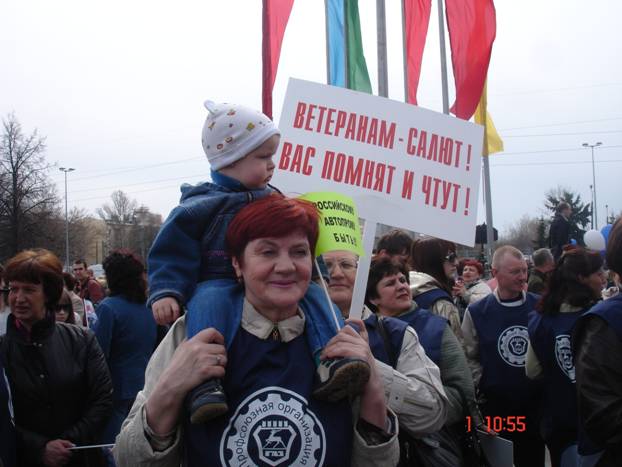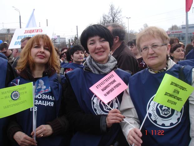 В этот раз первомайская акция проходила в форме митинга на площади перед Дворцом спорта Профсоюзов на пр.Гагарина. В митинге приняло участие более 3500 представителей различных Профсоюзов.