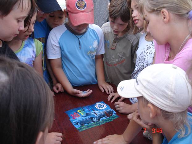 На первой станции «Структурной» профгруппы-отряды встречала Волынская Татьяна, председатель комиссии по орг.работе профкома ОАО «ГАЗ». Ребятам предлагалось собрать пазлы с изображением эмблем профсоюзной организации ГАЗ, Облсовпрофа, ЦК профсоюза и ФНПР. Поговорили и о строении профсоюзов и о датах их создания, и о количестве членов профсоюза в каждой их них.