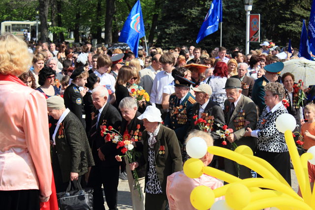 Начались мероприятия, посвященные Дню Победы, на площади им. Киселева: играл военный оркестр, выступали коллективы дворца культуры. С трибуны собравшихся ветеранов, молодежь завода и учащихся школ приветствовали руководители района, завода, общественных организаций.