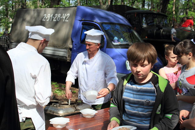 Для всех работала полевая кухня, выступали народные коллективы, прошли театрализованные постановки с участием солдат в форме Великой Отечественной.