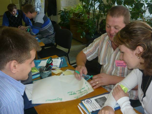 Ребята нарисовали, как они представляют профсоюз сегодня, каковы основные принципы профсоюзного движения, прописали один день из жизни председателя профкома, ну и получили домашнее задание на выездной семинар.
