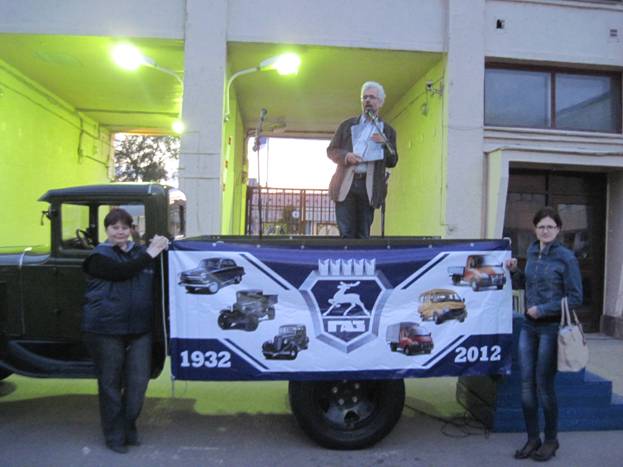 …Ровно в 10 вечера более 40 автомобилей (ГАЗ-АА, ГАЗ-67, «Эмки», «Победы», ЗиМы, разнообразные «Волги» - от «санитарок» до КГБшных «догонялок», «Чайки» нескольких модификаций) приехавшие из Белоруссии, Украины, Эстонии, Финляндии, множества городов России, выстраиваются возле 6-й проходной. Одна из полуторок превращается в импровизированную трибуну: на нее должны подняться губернатор Нижегородской области В.П.Шанцев, глава Нижнего Новгорода О.В.Сорокин, руководитель дивизиона «Автокомпоненты» К.К.Эпштейн, руководитель дивизиона «Легкие коммерческие и легковые автомобили» В.Н.Сорокин. Но добраться до официальной части гонок оказывается не так просто - высокие гости не могут оторваться от осмотра экспозиции ретромашин.