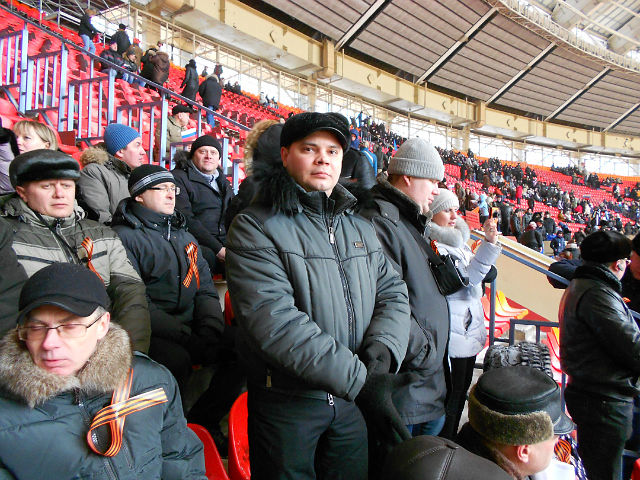 23 февраля, в День защитника Отечества, на митинг в поддержку стабильности пришли более 200 тысяч человек. Сколько точно – никто не считал. Потому что стадион ''Лужники'', который вмещает 130 тысяч, был забит под завязку, а вокруг него образовался еще один митинг – из числа тех, кто внутрь не попал. Специально для них все происходящее на стадионе транслировали на больших экранах.