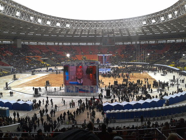 Люди, которые не хотят оранжевых революций, а хотят, чтобы им дали возможность спокойно работать и планировать свою жизнь хотя бы на несколько лет вперед собрались на стадионе в Лужниках
