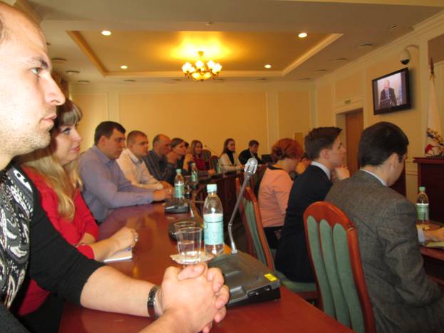 Открыл встречу Заместитель председателя ЗCНО Евгений Иванович Морозов, который является инициатором данной встречи. Он рассказал о принятом еще в 1997 году законе о молодежной политике в Нижегородской области, аналогов которому нет пока на Федеральном уровне, а также о других законодательных инициативах ЗС НО и депутатской деятельности. Евгений Иванович акцентировал внимание молодежи на том, что 2014 год – год многих юбилеев, в числе которых были отмечены 300-летие Нижегородской губернии (6 февраля) и 20-летие ЗСНО (27 марта).