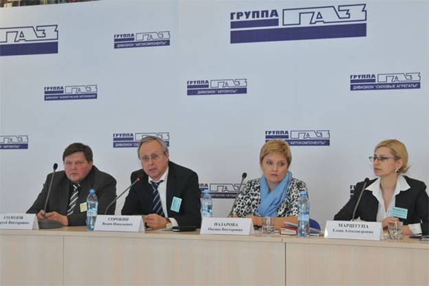 Продолжился рабочий визит "профсоюзников" из дивизионов "Автобусы", "ЛКиЛА", "Автокомпоненты" и "Силовые агнрегаты" в Управляющей компании. Во встрече принимали участие председатель профкома ППО в ОАО" ГАЗ" С.В.Солодов, Президент Группы ГАЗ" Н.В.Сорокин, заместитель генерального директора по персоналу корпорации "Русские машины" О.В.Назарова, и.о.директора по персоналу Группы "ГАЗ" Е.А.Марштупа.