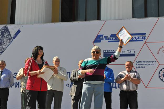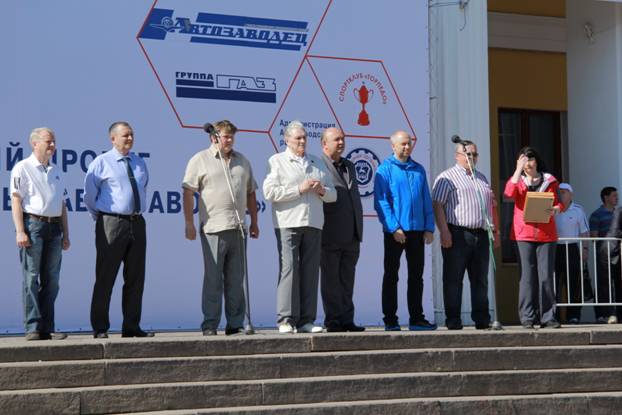 Перед началом соревнований на площади перед Дворцом культуры ОАО "ГАЗ" участников соревнований поздравляли заместитель министра промышленности и инноваций Нижегородской области Игорь Сазонов, заместитель министра спорта и молодежной политики Нижегородской области А.Москвин, заместитель Главы администрации Автозаводского района В.А.Нагин, директиор спортклуба "Торпедо" Н.В.Горшков, председатель профкома ОАО "ГАЗ" С.В.Солодов, Президент ОАО "ГАЗ", депутат ЗС НО Н.А.Пугин, заместитель Председателя ЗС НО Е.И.Морозов, а также главный редактор газеты "Автозаводец" И.В.Петрова, которая вручила сертификаты на бесплатную подписку на "Автозаводец" троим самым давним друзьям газеты и верным ее подписчикам - зам.директора СК "Торпедо" И.Л.Шапиро, зам.директора НАМТ Г.И.Калининой и руководителю Общества инвалидов "ШАНС" А.К.Трефилову.