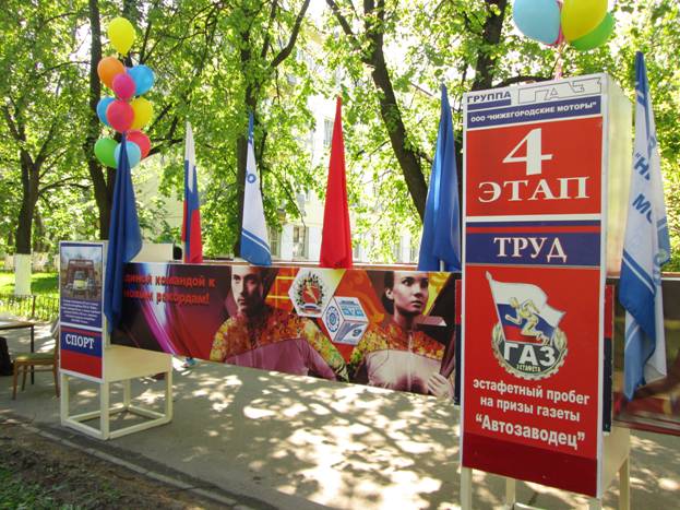 В этом году этапов было 10. В их оформлении принимали участие коллективы и профсоюзные организации: ЗААГ (2 этап), ООО «Сервисный центр» (3 этап), ООО «Нижегородские моторы» (4 этап), СЦРиТОО (5 этап), ИП (6 этап), МП (7 этап), ПРП (8 этап), ПУАТ (10), УТОИК (10 этап)