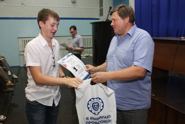 Лучшим студентам Нижегородского автомеханического техникума почетные дипломы, сувениры с профсоюзной символикой и денежные премии вручил председатель профкома ОАО «ГАЗ» С.В.Солодов.