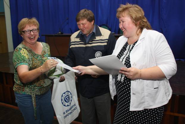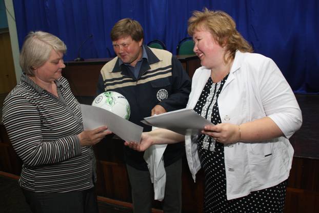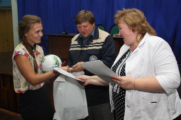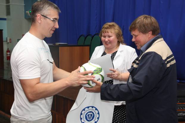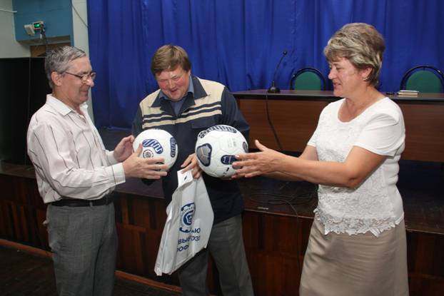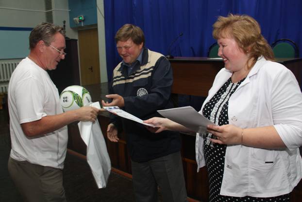 На еженедельном совещании профсоюзного актива директор Нижегородского филиала ООО "КорпусГрупп" Филимонова Татьяна Геннадьевна вручила всем победителям футбольный мяч и памятный диплом, а также небольшой сувенир от профсоюзной организации Горьковского автозавода.