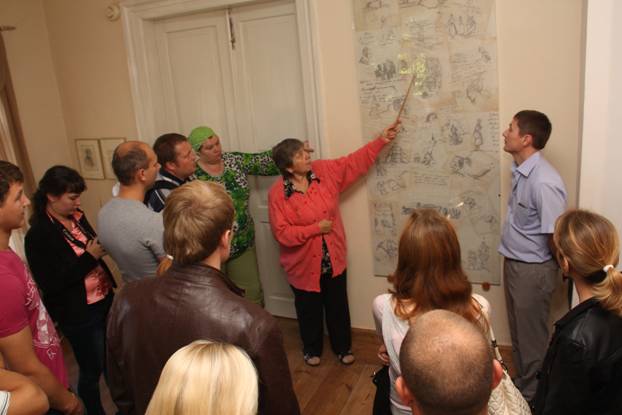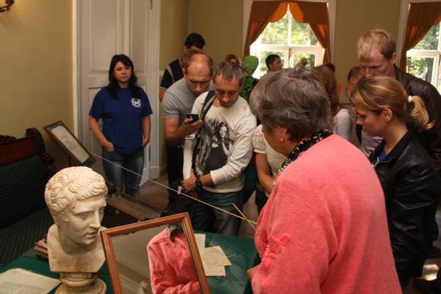 В ходе экскурсии посетили Церковь Успения Божией Матери, господский двор с мезонином, усадебный двор, вотчинная контора, конюшня, баня, яблоневый сад, живописный парк с прудами и резными белым мосток,