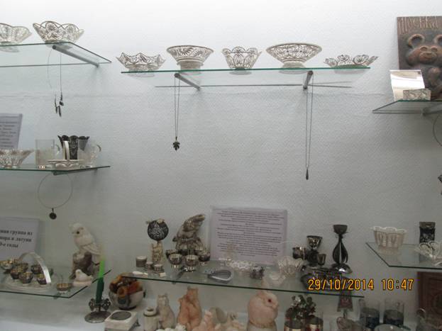 Ветераны посетили Павловский краеведческий музей – один из красивых купеческих особняков XIX века, с лепными потолками, печами – каминами, резными дверьми и старинной мебелью, познакомились с уникальной композицией мастеров-кудесников - металлистов: складные ножи, выполненные в виде кремлевской башни, ордена Победы, замки фигурные, с секретом, разных размеров – от «царя-замка» весом 50 кг до самого маленького замочка застегнутого на ушко иголки.