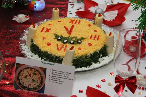 А сколько блюд было на "Новогоднем голубом огоньке"! А какие изысканные названия! Салаты "Ирония судьбы", "Фейервер вкуса", "Под бой курантов", торты "Сани в сметане", "Розы на снегу", "ГАЗЕЛЬ Next", горячее блюдо "Докудахталась".