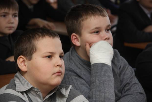 Во время урока мужества рассказ о службе на Северном Кавказе ребята слушали очень внимательно, с интересом разглядывая армейские фотографии бойцов, их боевые медали и знаки отличия, снимки рядом с военной техникой. Дети засыпали ветеранов вопросами: есть ли в Вооруженных силах женщины, как ездят БТРы в горах, кто научил Михаила и Павла играть на гитаре и что означают нашивки на форме. А еще юным автозаводцам понравилось то, как искренне и эмоционально Михаил Калинин исполнил песню собственного сочинения.