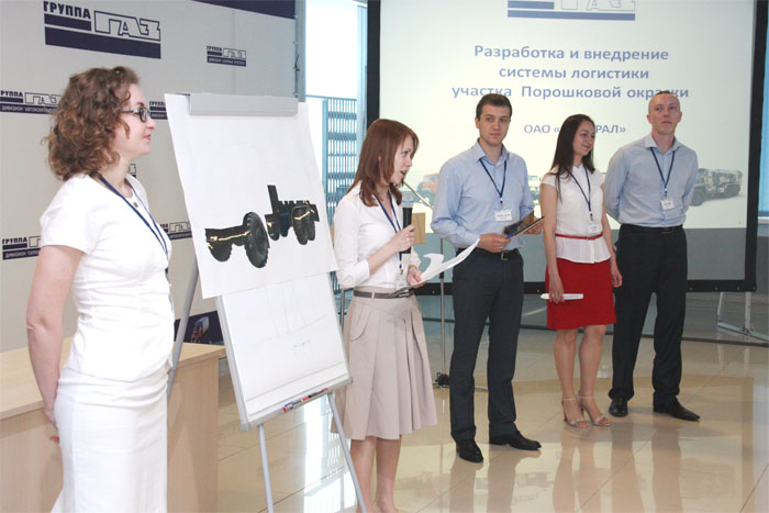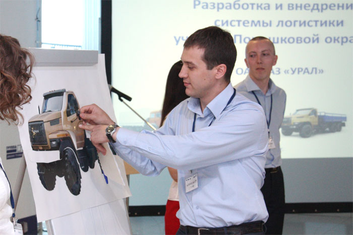 Но креативными элементами дело не ограничилось, все проекты – это готовые решения вполне конкретных проблем. Например, команда АЗ «Урал» усовершенствовала логистику деталей, поступающих из окрасочного цеха на главный конвейер. Для решения проблемы проектная команда предложила внедрить тянущую систему, в результате чего сократились запасы незавершенного производства, переработка операторов. Экономический эффект, по расчетам специалистов, составит на конец 2015 года 1,25 млн рублей. По словам молодого специалиста Евгения Зотова, на «Урале» руководители разных уровней шли навстречу и помогали всем необходимым. «А самое главное для нас – это участие в таком масштабном проекте, - говорит он. - Проблему могли решить и без нас. Но шанс поучаствовать – очень большая удача и возможность для личностного роста».