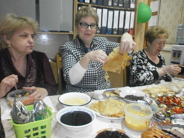 В лучших кулинарный традициях были предоставлены блины на все вкусы: с припеком, с луком и яйцом, с творогом, с печенкой, ажурные блины и т.д.