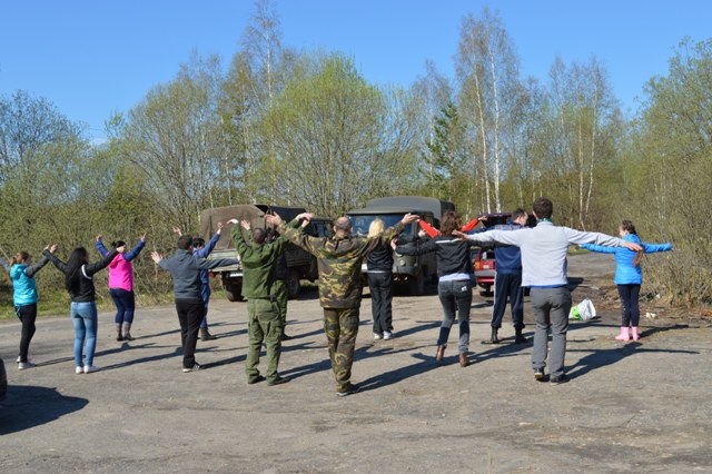 Как и положено утро начиналось с зарядки, чтобы зарядиться бодростью на весь день. Ну, а сразу после завтрака десант приступал к работе.