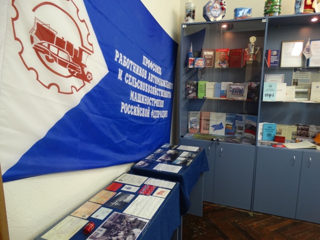 Центральная экспозиция – это знамя Профсоюза АСМ, привезенное профактивистами ГАЗа в мае 2005 с «горбатого» моста с митинга у Дома правительства в поддержку отечественного автопрома.