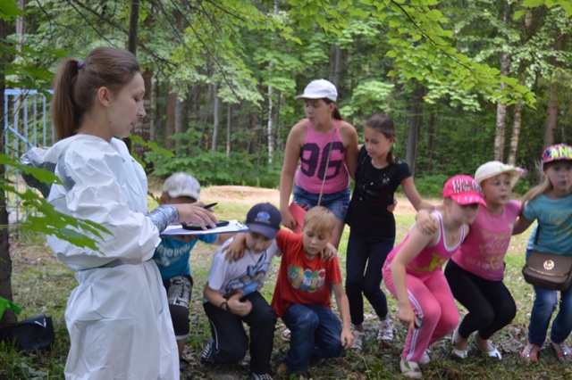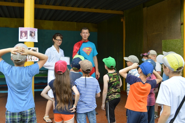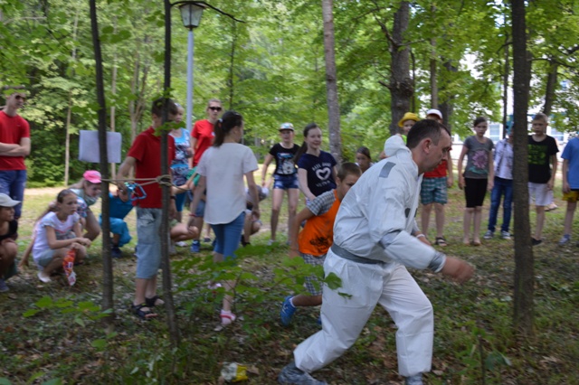 Так же всем отрядам предстояло побывать на «МЕДосмотре», где доктор Градусникова Таблетка Валерьяновна со своими говорящими бактериями Спира и Бактерион рассказали ребятам о пользе и вреде бактерий, о предотвращении некоторых заболеваний. Ну, а что бы получить букву – подсказку, нужно было качественно и быстро наложить шину пострадавшему при переломе.