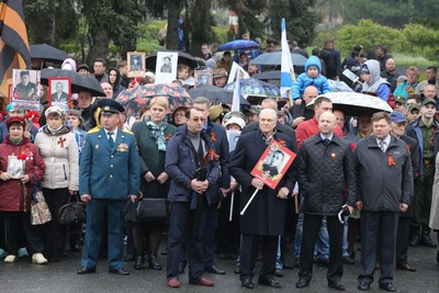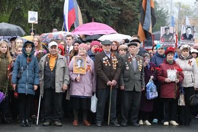 Следующим этапом становится праздничное шествие к мемориалу Вечного огня. Молодое поколение и те ветераны, которые еще в строю, плавно движутся в праздничной колонне по проспекту Ленина мимо аллеи славы и почета. Школьники, участвовавшие в шествии бессмертного полка, без остановок кричат «Ура!», «Спасибо Вам ветераны!», «Поздравляем с Днем Победы!».
