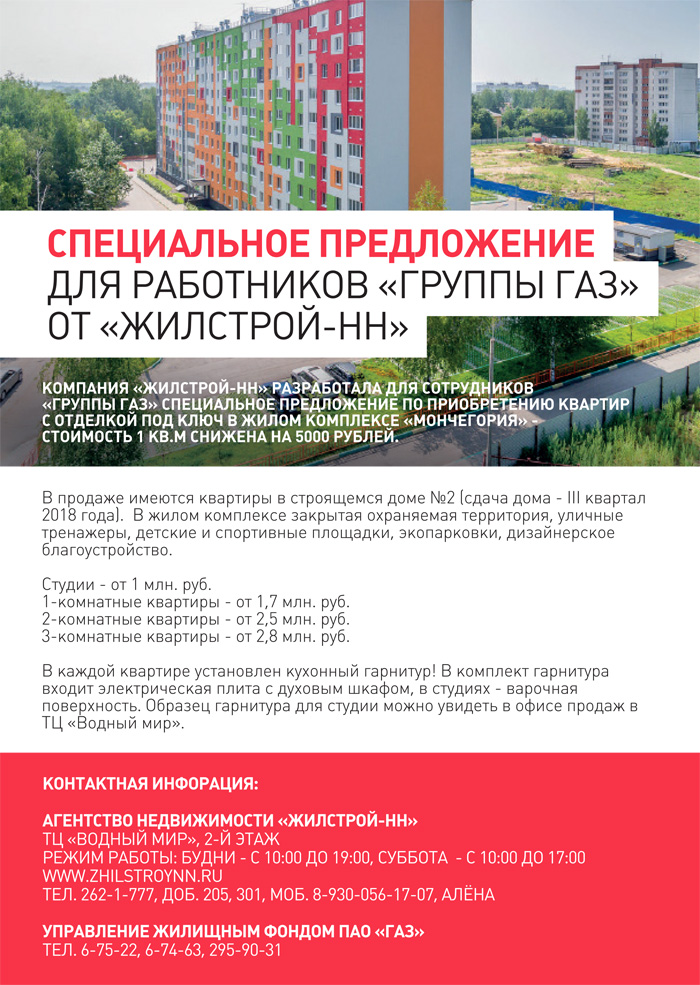 1.Суменко Е.А. – Рассказал об улучшении условий жилищной программы "Жилстрой-НН". Об имеющихся скидках для работников предприятия при покупке квартиры во втором строящемся доме жилого комплекса "Мончегория". О планах строительства и развития нового комплекса "Юг-2" (начало строительства - вторая половина 2018г.). Сообщил о наличии выгодных ипотечных программ с рядом банков.