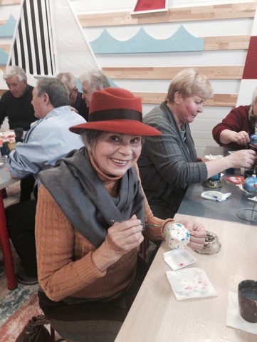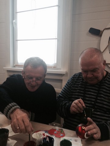 В завершение экскурсии состоялся мастер-класс по росписи елочной игрушки, где каждый попробовал себя в роли художника и занимался росписью своей елочной игрушки индивидуальными рисунками на всевозможные темы.