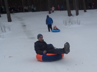 В соревнованиях по тюбингу (спуск с горы на дальность)