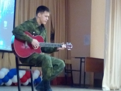 Михаил Вячеславович Калинин рассказал про армейскую жизнь в Российской Армии, а Данил спел патриотические песни.