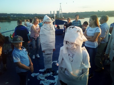 Наше путешествие заключалось не только в обозрении красот, но и несло практическую пользу. Все участвовали в конкурсах и викторинах. Активно себя проявили и маленькие участники путешествия. Перед ребятами стояла задача быстро сделать мумию из подручных средств и презентовать свое произведение компетентному жюри. Все дети очень старались, подходя к процессу творчески, представив на суд жюри совершенно оригинальные результаты.