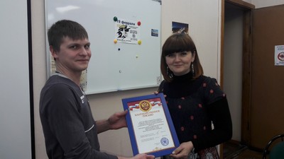 Завершилось совещание торжественным вручением Благодарности от реабилитационного центра, в котором актив Совета молодежи провел 2 новогодних представления.
