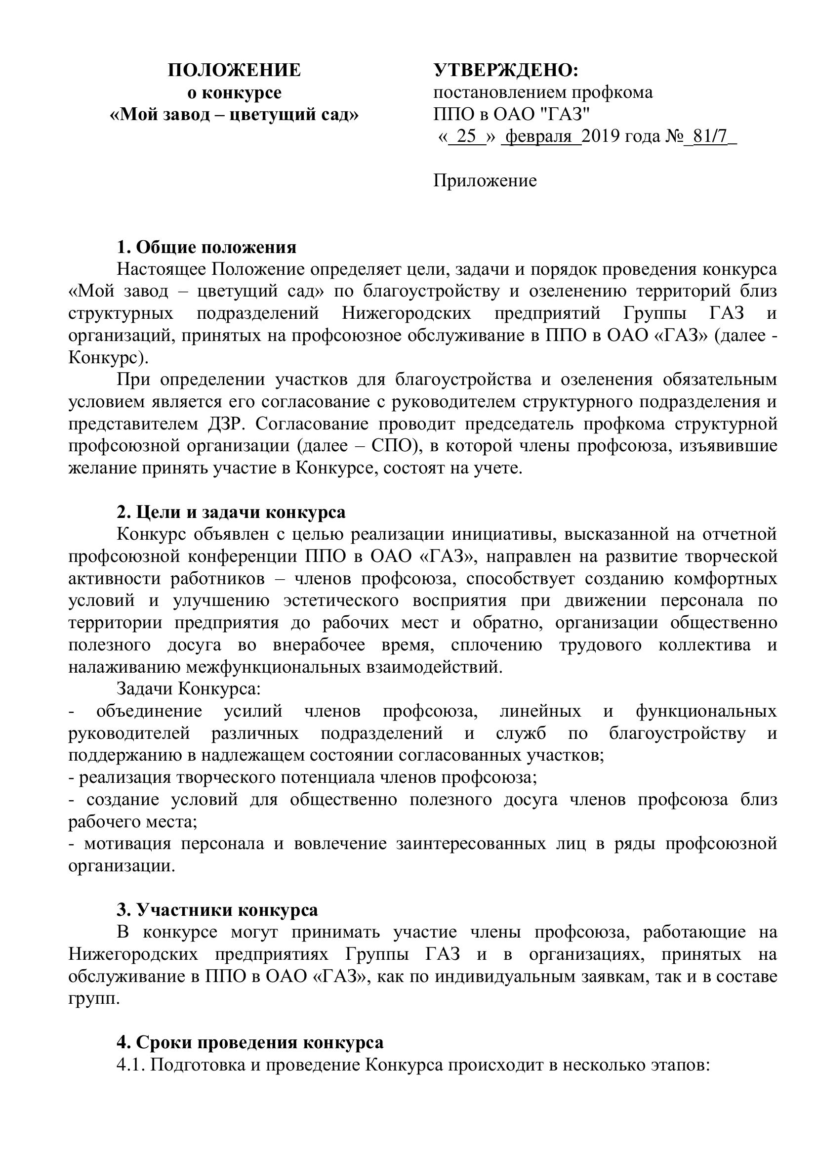 Конкурс проводится с целью благоустройства и озеленения территорий близ структурных подразделений Нижегородских предприятий и организаций, принятых на профсоюзное обслуживание в ППО в ОАО «ГАЗ».