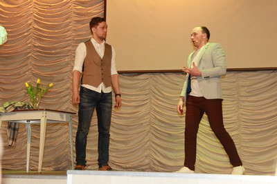 И вот 13-00 занавес. Ребят из команды "Павловские Павловчане" мы знаем давно и не по наслышке. Они становились чемпионами игр КВН Группы ГАЗ неоднократно и спектакль обещал быть очень интересным.