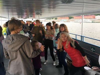 Уже на закате солнца, на теплоходе включилась зажигательная музыка и все члены профсоюза пустились в пляс под современные музыкальные хиты. Теплоход плавно скользил по речным волнам, а наше 4 х часовое путешествие потихоньку подходило к концу.