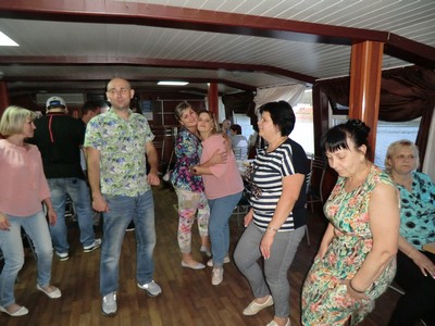 Обзорный вид с теплохода удивлял отдыхающих очень красивой природой. Была организована дискотека, на которой все приняли активное участие.