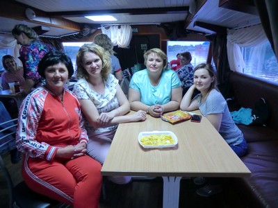 Все дружно произвели посадку на теплоход «Москва-13»,разместились на палубах теплохода, кто-то на нижней палубе, и пожеланию на верхней.