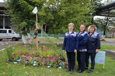 Следующим подразделением для оценки творческих работ стало БЕ КП. Здесь одним участником Сипягиной О.А. под силу оказалось подготовить и красочно оформить целых три площадки. Ольга Александровна благоустроила зону отдыха у центрального входа в Кузнечное производство, на второй клумбе сформировала из бархоток надпись «КП», а у входа в рессорный цех оформила цветник.