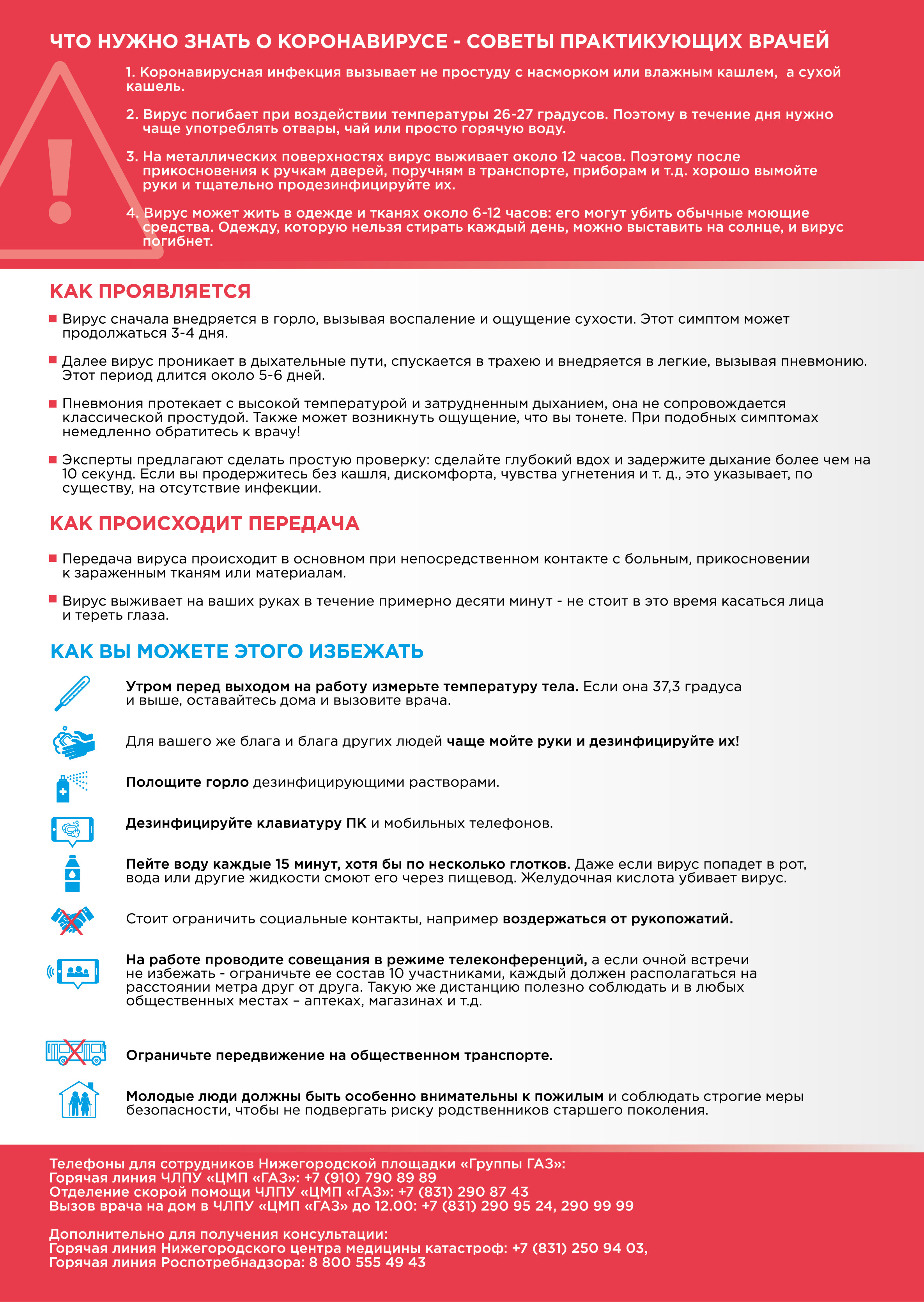 В нашей стране и во всем мире предпринимаются оперативные меры, чтобы не допустить распространения коронавирусной инфекции. В «Группе ГАЗ» также усилены меры безопасности, и мы рассчитываем на ваше понимание и неравнодушие в этой ситуации.