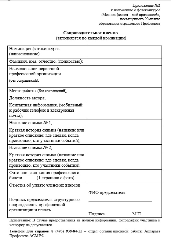 Фотографии на Конкурс направляются с сопроводительным письмом по каждой номинации (Приложение 2)