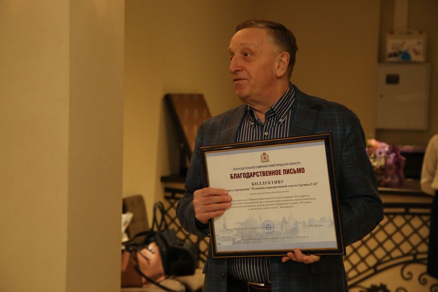 «Семейный» вечер не обошелся без почетных гостей - многолетних друзей издания, которые поздравили «Автозаводец» с важной датой. Депутат Законодательного собрания Нижегородской области Владимир Солдатенков вручил коллективу редакции благодарственное письмо регионального парламента.